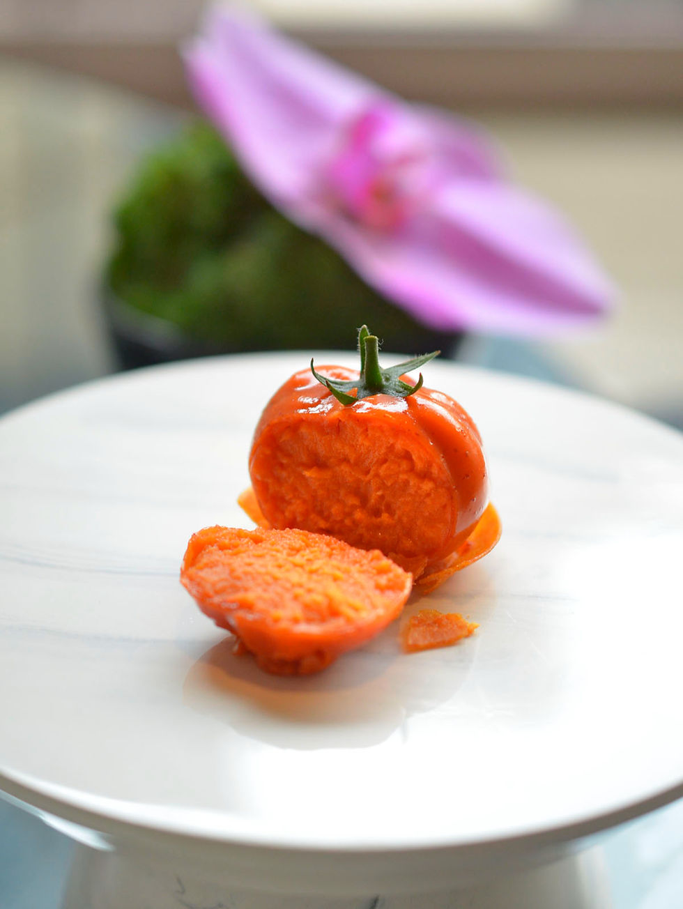 なんて美味しそうな海老茶色のトマト!そして、こういう見事な造形の細工はタイの真骨頂。中はじゅっくりと煮込んだトマトのうまみが詰まっています。